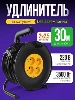 Удлинитель на катушке 30 метров ПВС 2x2,5 мм уличный