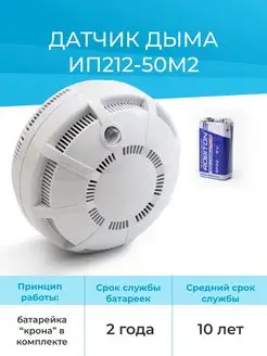 Датчик дыма с сиреной на батарейке (в комплекте) ИП 212-50М2