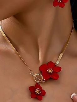 Серьги, подвеска и браслет на ногу бижутерия комплект цветы