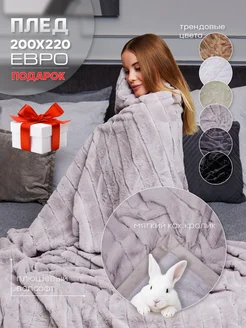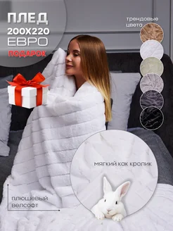 Плед 200х220 на кровать и диван, плюшевый, белый