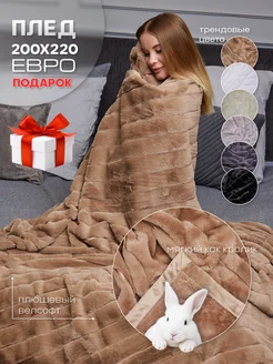 Плед 200х220 на кровать и диван, евро, светло-коричневый