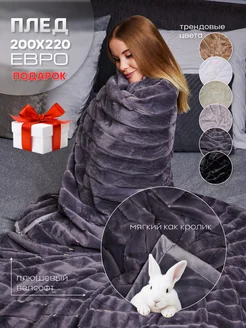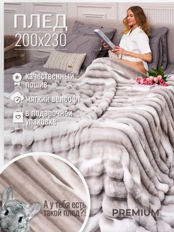 Плед 200х220 на кровать и диван, плюшевый, серый
