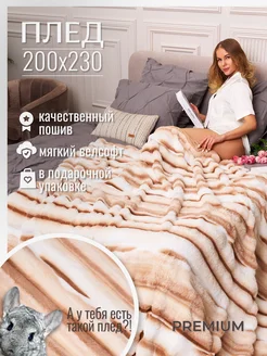 Плед 200х220 на кровать и диван, плюшевый, коричневый