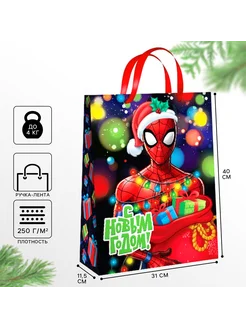 Подарочный пакет новогодний Человек-паук 31х40