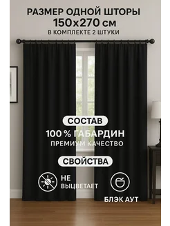 Шторы блэкаут габардин 150×270 см, 2 шт, чёрные