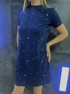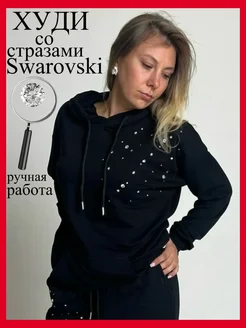 Женская чёрная футболка в стразах, базовая, большие размеры