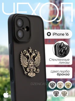 Чехол на iPhone 16 Герб России РФ металлический