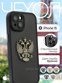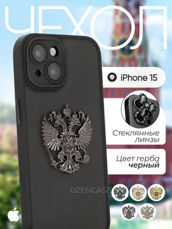 Чехол на iPhone 15 Герб России РФ металлический