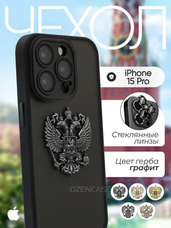 Чехол на iPhone 15 Pro Герб России РФ металлический