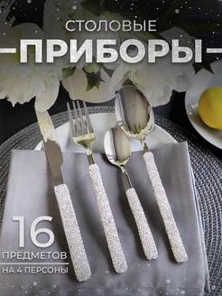 Новогодний набор столовых приборов 16 предметов 4 персоны