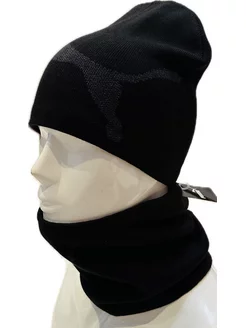 Шапка со снудом комплект на флисе зимняя Puma
