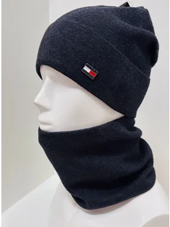Шапка со снудом комплект на флисе зимняя
