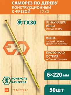 Саморезы конструкционные желтые ТХ30 6х220 50 шт