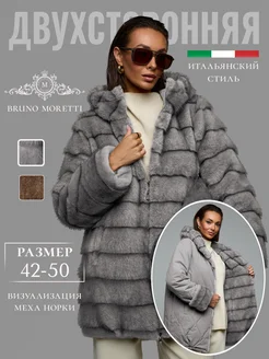 Шуба искусственная из экомеха с капюшоном двухсторонняя