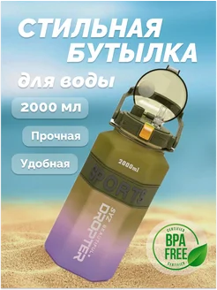 Бутылка для воды спортивная с трубочкой 2 л 700 мл и 260 мл