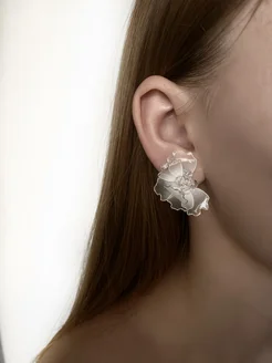 Свадебные серьги лепестки с жемчугом