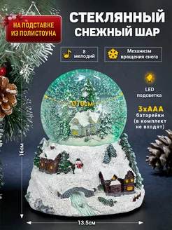 Снежный шар новогодний с подсветкой Домики D=10 см