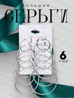 Серьги бижутерия кольца 6 пар, набор большие, маленькие