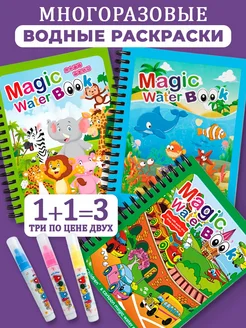 Водная многоразовая раскраска набор 3 шт + 3 маркера