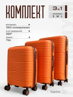 Чемодан полипропиленовый 3в1 на съемных колесах