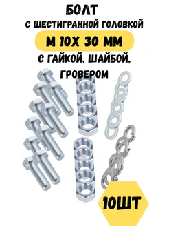 Болт шестигранный М10х30мм с гайкой шайбой гровером