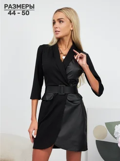 Платье черное кожаное праздничное офисное