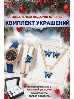 Набор бижутерии комплект браслет колье серьги часы кольцо