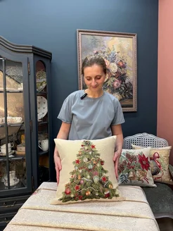 Наволочка декоративная новогодняя из гобелена 45х45 Дрезден