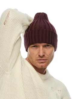 Шапка вязаная из хлопка с отворотом зимне-весенняя