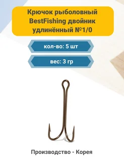 Крючок рыболовный двойник № 1 0 (5 шт)