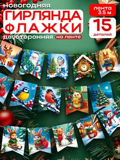 Гирлянда флажки ретро новогодние украшения 15шт