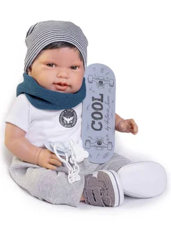 Кукла младенец Пипо в сером, 42 см, мягконабивная