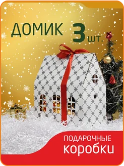 Новогодняя коробка домик 3 шт крафт с клеткой