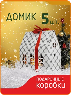 Подарочная упаковка домик 5 шт белый серая клетка