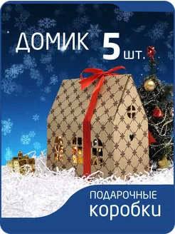 Новогодняя коробка домик 5 шт крафт коричневая клетка