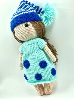 Мягкая вязаная игрушка Амигуруми Кукла в платье и шапке