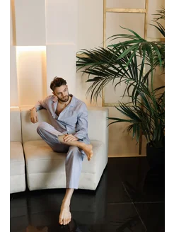Пижама рубашка с брюками в полоску летняя хлопок для дома