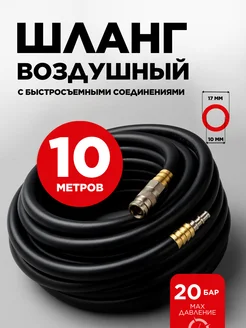 Шланг воздушный 10м 10*17 мм с быстросъемами для компрессора