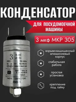 Конденсатор для посудомоечной машины 3 мкф 450В MKP 305