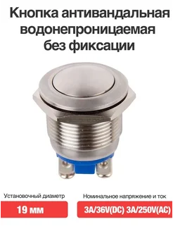 Кнопка антивандальная 19 мм с 2 винтами без фиксации