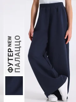 Брюки палаццо школьные синие футер