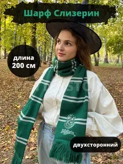 Шарф Гарри Слизерин двойной зимний толстый зеленый