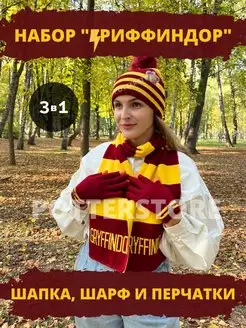 Шарф Гарри Поттер красно-желтый с эмблемой осенний в подарок
