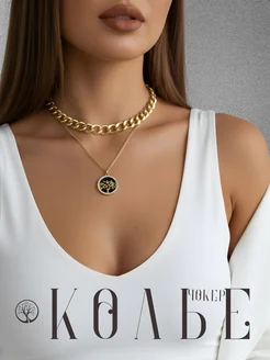 Колье бижутерия на шею толстая цепь и тонкая цепь