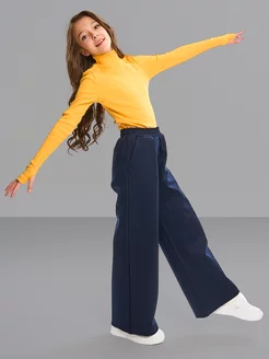 Школьные брюки палаццо на резинке трикотаж с поясом широкие