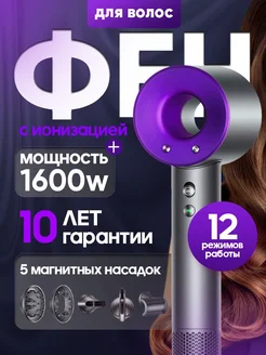 Фен для волос профессиональный с ионизацией 1600W 5 насадок