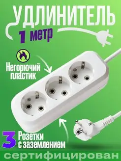 Удлинитель сетевой 1 метр с выключателем 2 гнезда