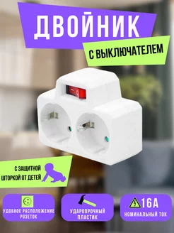 Разветвитель двойник с выключателем и подсветкой 2 гнезда