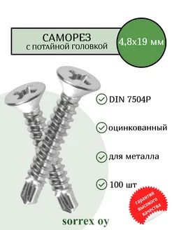Саморез по металлу 4,8х19 DIN 7504P потайной со сверлом