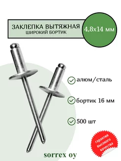 Заклепка вытяжная алюм сталь 4,8х14 широкий бортик 16 мм